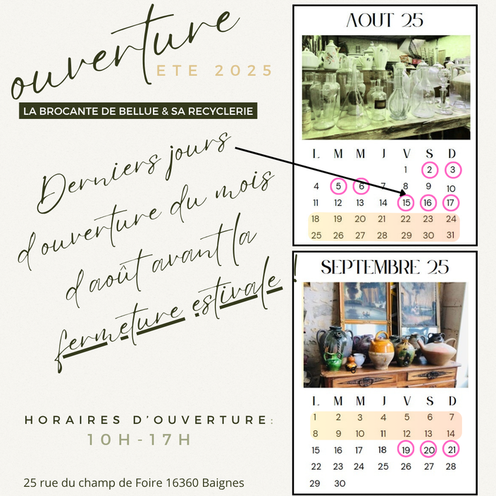 La boutique est fermée du 16 août au 2 septembre 2023 :